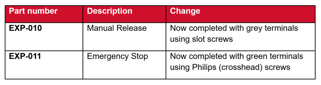 We want to make you aware of a change to the terminal component on the manual call points used in conjunction with our gas extinguishing panel ExGo.